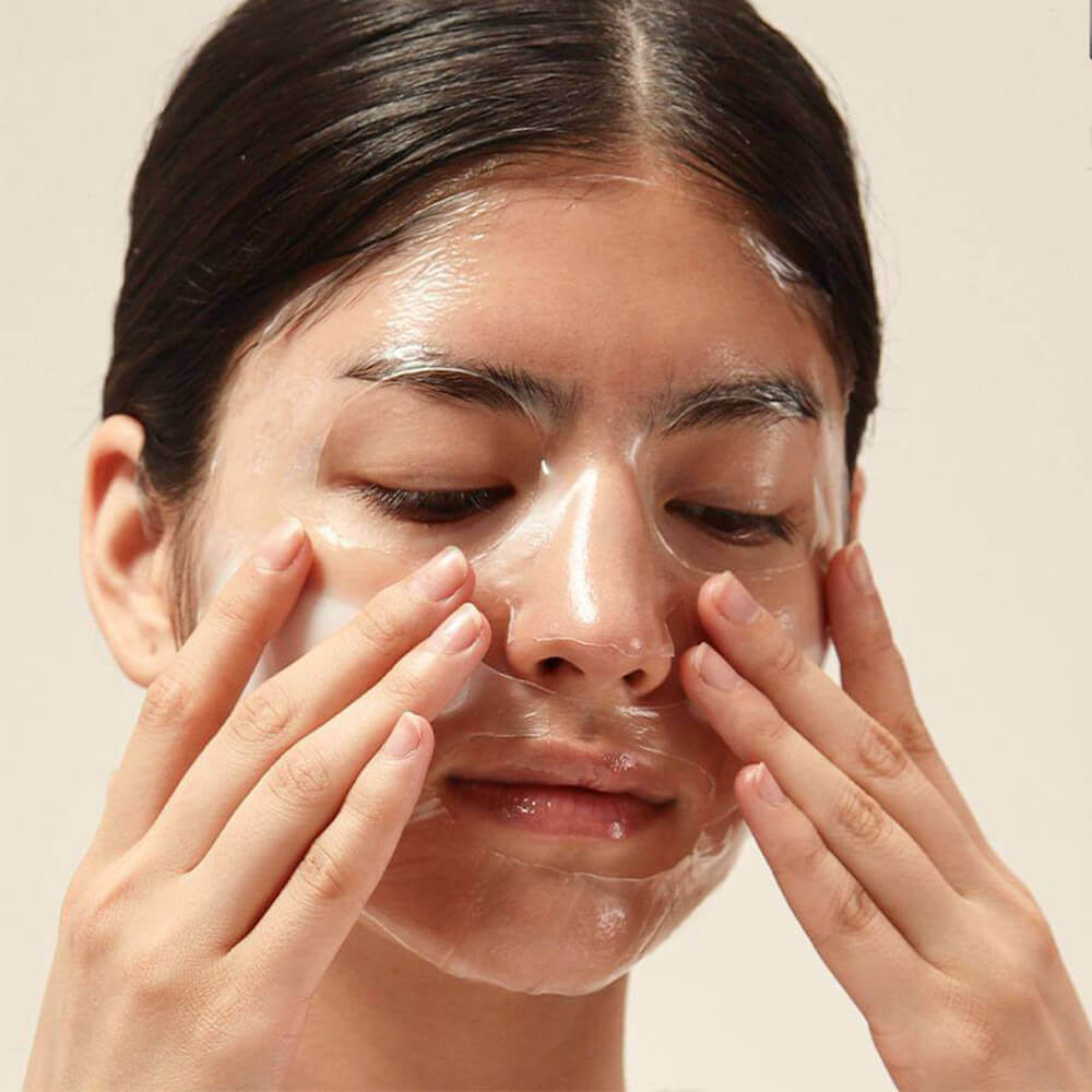 Masca acționează în doar 3–4 ore: baza hidrogelului livrează activii adânc în epidermă, devenind transparentă. Poate fi folosită și peste noapte — se fixează perfect, nu alunecă și nu lasă urme pe pernă.